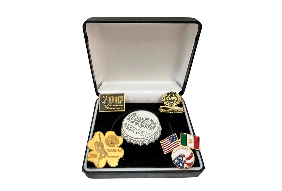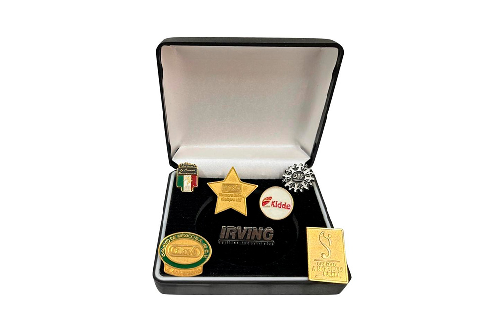 Material: Zamak, Plata .925, Oro 10,12 y 14 K/ Diferentes tamaños y formas/ Con o sin estuche/ Grabados: 1 o 2 caras/ Con o sin tintas.