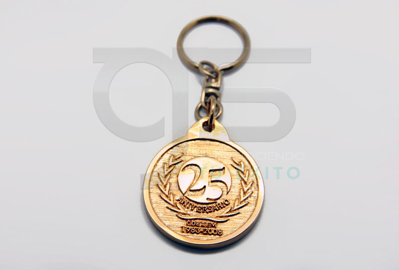 Material: zamak; Grabados: plano y 3D en 1 o 2 caras, Acabado: cobrizo, dorado, niquelado..